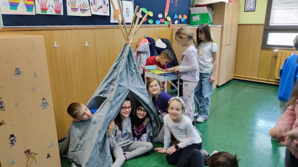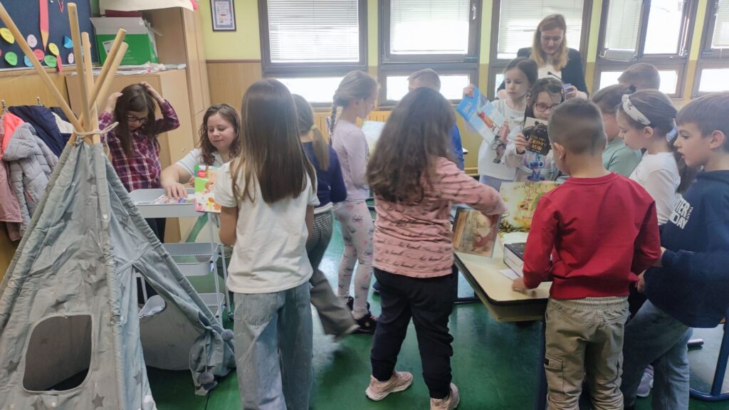 Potaknuti sudjelovanjem u projektu „Naša mala knjižnica“, učenici 1.b razreda napravili su još jedan važan korak u razvijanju ljubavi prema čitanju – oformili su vlastiti čitateljski kutak u učionici.