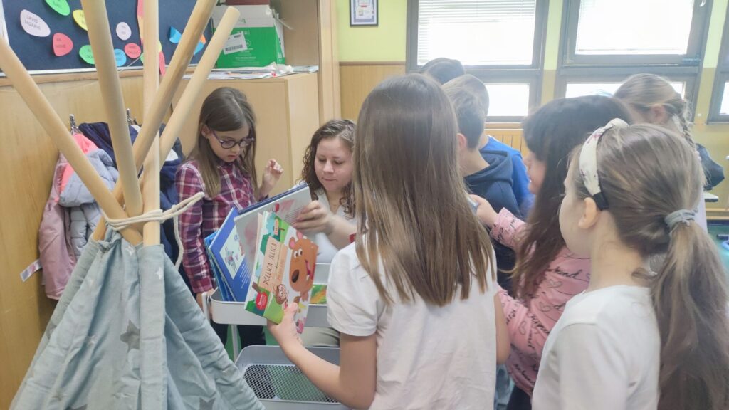 U 1.b razredu s veseljem nastavljamo njegovati ljubav prema knjigama, jer znamo da upravo iz malih čitateljskih koraka nastaju veliki čitatelji.
