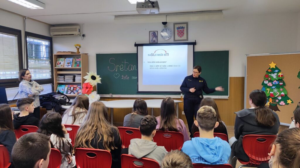U našoj su školi službenice policije zadužene za poslove prevencije održale edukativno predavanje pod nazivom „Prevencija nasilničkog kriminaliteta i vandalizma, prevencija obiteljskog nasilja, sprječavanje nasilja prema ženama, nasilja među djecom i mladima te izgradnja kulture nenasilja“.