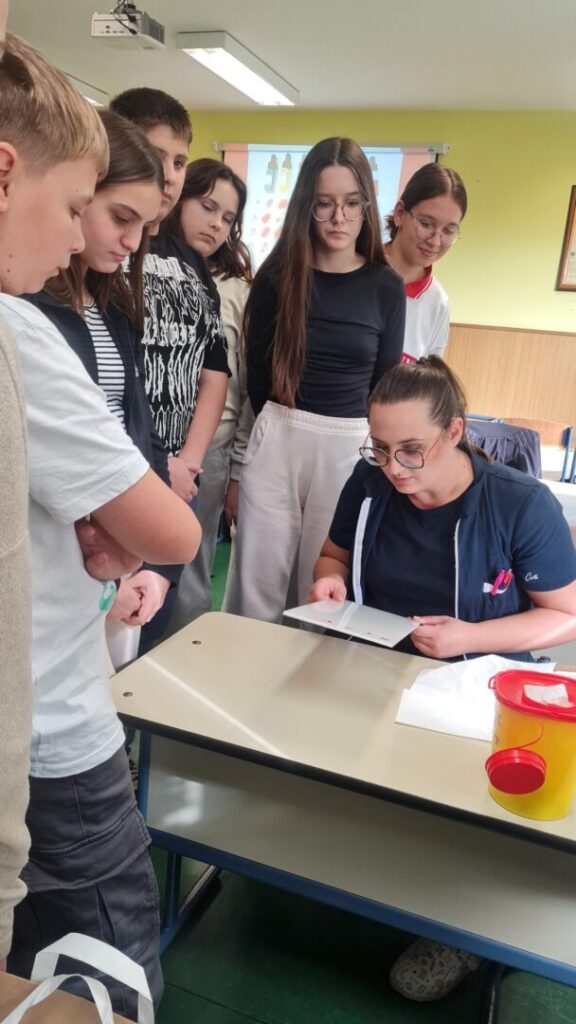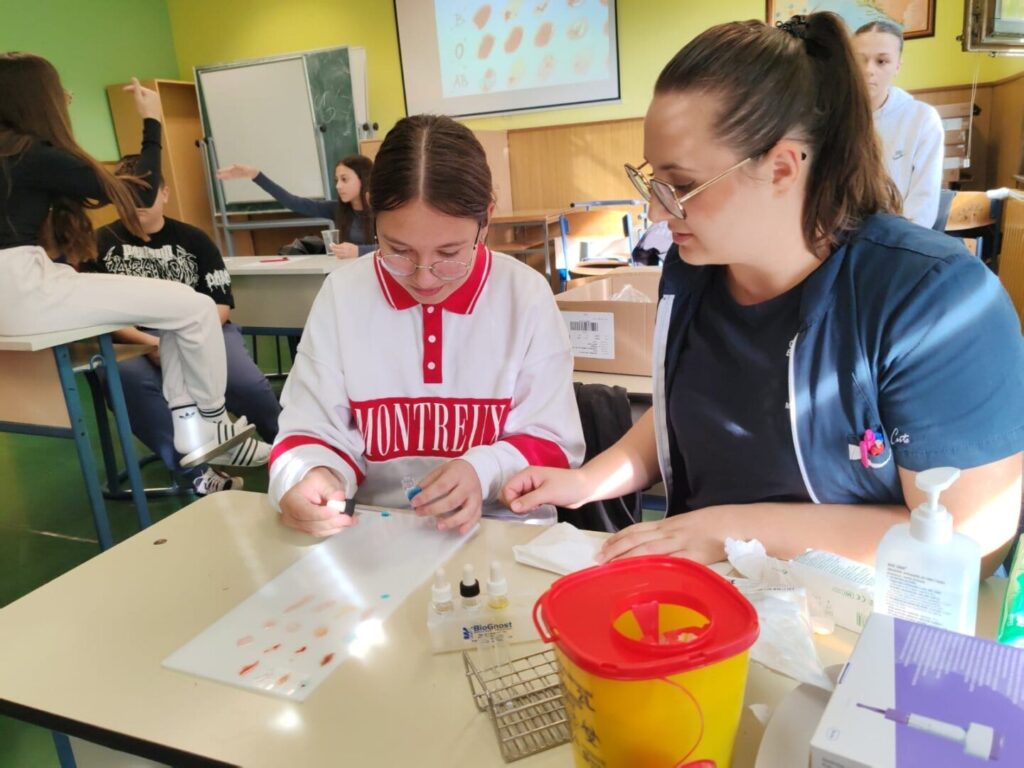 Tijekom radionice, učenici su kroz praktični dio imali mogućnost odrediti vlastitu krvnu grupu, što je izazvalo veliko zanimanje i oduševljenje. Osim toga, dr. Nikolina Brkić je održala predavanje o važnosti dobrovoljnog davanja krvi, pojasnivši zašto je ono ključno za spašavanje života te kako se i oni jednog dana mogu uključiti kao darivatelji.